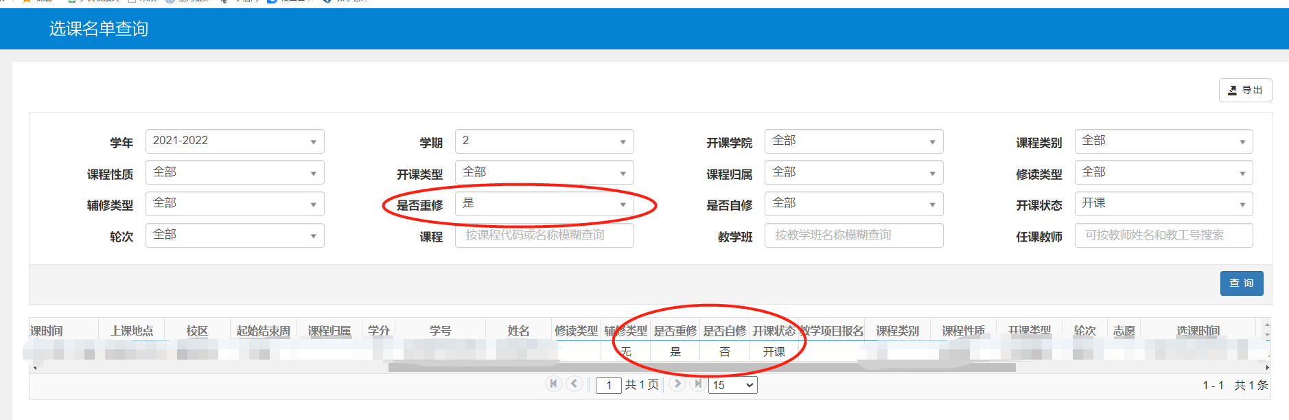 ①跟班重修(选课):本学期开课的课程,按照所选教学班,跟班上课,完成教学任务。