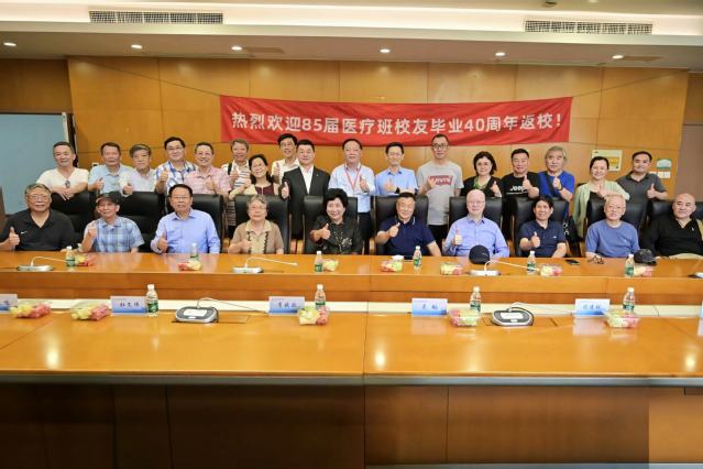 5月22日,在j9九游(官方)网站建校十周年之际,医学影像学院85届医疗班校友集体返校、欢聚一堂,共同庆祝学校生日。吴韬校长、汤磊副校长参加校友返校活动。医学影像学院李晓欧院长、周进祝教授、学院校友分会办公室主任孙佳鸣,以及在校学生代表共同迎接校友返校。活动由医学影像学院党总支副书记乔慧敏主持。