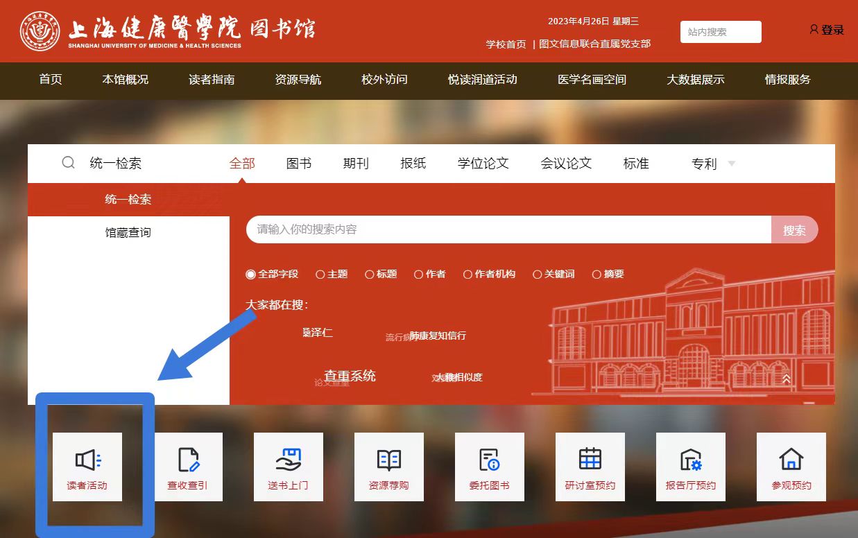 1.电脑端-图书馆门户网站https://lib.sumhs.edu.cn(“读者活动”栏目)提交。